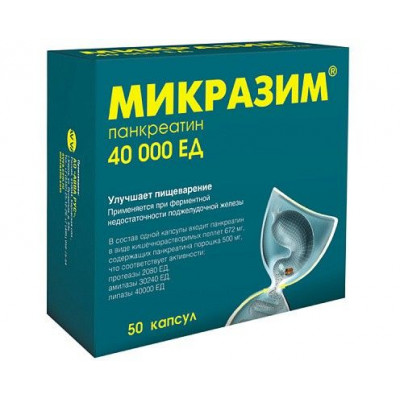 Внутрь, запивая достаточным количеством нещелочной жидкости (вода, фруктовые соки). Если разовая доза препарата больше 1 капс., следует принять половину от общего количества капсул непосредственно перед приемом пищи, а другую половину — во время еды. Если разовая доза — 1 капс., ее следует принять во время еды. При затрудненном глотании (например у детей или пожилых людей) капсулу можно раскрыть и принимать препарат непосредственно в пеллетах, предварительно смешав их с жидкостью или жидкой пищей (рН 10000 ЕД и Микразим® 25000 ЕД. Допустимая доза для детей до 1,5 лет — 50000 ЕД/сут; старше 1,5 лет — 100000 ЕД/сут. Продолжительность приема панкреатина может варьировать от нескольких дней (нарушение пищеварения) до нескольких месяцев или лет (длительная заместительная терапия). Заместительная терапия при различных видах экзокринной недостаточности поджелудочной железы Стеаторея (более 15 г жира в кале в сутки): при наличии поносов, снижении массы тела и отсутствии эффекта от диетотерапии назначают 25000 ЕД липазы при каждом приеме пищи. При необходимости и хорошей переносимости дозу повышают до 30000–35000 ЕД липазы на один прием. Дальнейшее увеличение дозы в большинстве случаев не улучшает результаты лечения и требует пересмотра диагноза, снижения содержания жира в рационе и/или дополнительного назначения препаратов — ингибиторов протонного насоса. При нерезко выраженной стеаторее, не сопровождающейся поносами и снижением массы тела, назначают от 10000 до 25000 ЕД липазы на прием. Муковисцидоз: начальная расчетная доза для детей младше 4 лет — 1000 ЕД/кг липазы при каждом кормлении, для детей старше 4 лет — 500 ЕД/кг липазы при каждом приеме пищи. Дозу следует подбирать индивидуально, в зависимости от тяжести заболевания, выраженности стеатореи и нутритивного статуса. Поддерживающая доза для большинства пациентов не должна превышать 10000 ЕД/кг/сут липазы.