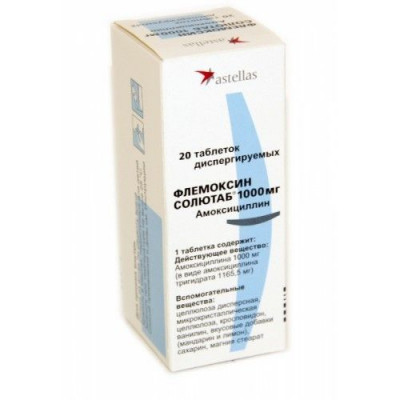ФЛЕМОКСИН СОЛЮТАБ 1000МГ. №20 ТАБ.ДИСПЕРГ. /АСТЕЛЛАС/