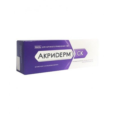 Наружно. Акридерм® СК наносят тонким слоем на пораженный участок кожи 2 раза в день — утром и вечером. Другая частота применения может быть установлена врачом, исходя из тяжести заболевания. В легких случаях мазь достаточно применять, как правило, один раз в день; при более тяжелых поражениях может понадобиться более частое применение.