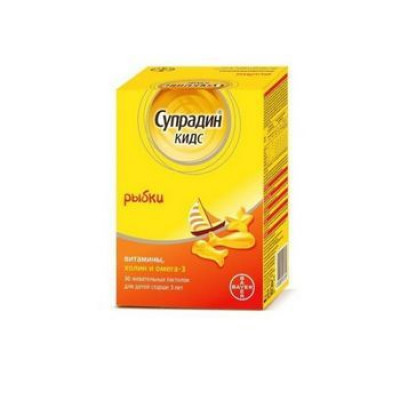 Линейка «Супрадин Кидс» содержит необходимые и обязательные для детей элементы. Формула «Супрадин Кидс Рыбки» усилена очищенной Омега-3 из морских водорослей. Компоненты «Супрадин Кидс Рыбки» способствуют развитию: - памяти, - внимания, - интеллекта ребенка.