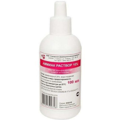 АММИАК 100МГ/МЛ. 100МЛ. №1 Р-Р Д/НАРУЖ./ИНГ. ФЛ. /САМАРАМЕДПРОМ/