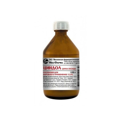 ЦИНДОЛ 12,5% 125Г. СУСП. Д/НАРУЖ.ПРИМ. ФЛ. /МОСФАРМА/