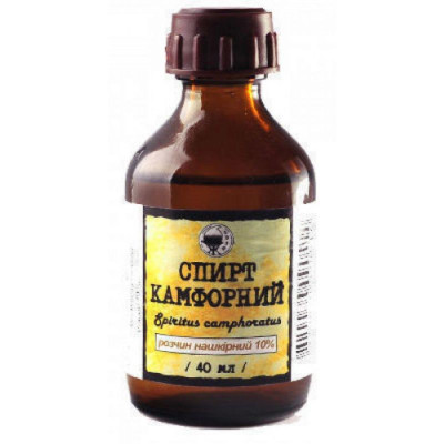 Активные вещества: камфора 10 г; Вспомогательные вещества: этанол (этиловый спирт) 70 % до 100 мл