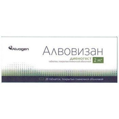 Беременность. Данные о применении диеногеста у беременных женщин очень ограничены. В исследованиях на животных репродуктивной токсичности, генотоксичности и канцерогенности при применениии препарата не выявлено. Применение препарата в период беременности противопоказано, так как терапия эндометриоза в период беременности не требуется. Период грудного вскармливания. Прием препарата Алвовизан® в период грудного вскармливания противопоказан. Исследования на животных показали, что диеногест проникает в грудное молоко животных. Не известно, проникает ли диеногест в грудное молоко человека. Следует решить вопрос о прекращении грудного вскармливания или терапии препаратом Алвовизан®. Решение о прекращении грудного вскармливания или об отказе от приема препарата Алвовизан® принимается исходя из оценки соотношения пользы грудного вскармливания для ребенка и преимущества терапии диеногестом для женщины.