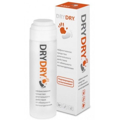 Бесцветная прозрачная жидкость без парфюмированного запаха во флаконе Dab-On (Дабоматик) Эффективное средство длительного действия от обильного потоотделения. В основе действия препарата лежит «блок» пор посредством формирования алюминиево-белкового комплекса. Радиоизотопный анализ показал, что активные компоненты не нарушают функции потовых желез. В результате «блока» происходит перенаправление выделения пота через поры других участков тела. Эффективность защиты от пота напрямую связана с такими показателями, как тип алюминиевой соли, её концентрация в продукте и уровень pH, т.е. с формулой DRYDRY Classic. Эффективное средство от потоотделения DRYDRY Classic оказывает антибактериальный эффект, тем самым препятствуя образованию неприятного запаха. Подходит для людей с нормальным и повышенным потоотделением.
