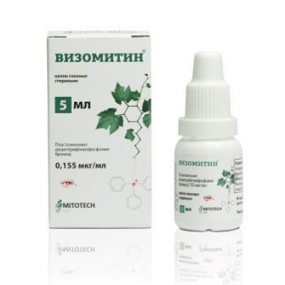 Пластохинонилдецилтрифенилфосфония бромид (ПДТФ) является производным пластохинона, который через линкерную цепь (С10) связан с остатком трифенилфосфина. При применении в низких (наномолярных) концентрациях ПДТФ проявляет высокую антиоксидантную активность. Оказывает стимулирующее действие на процесс эпителизации роговицы, способствует повышению стабильности слезной пленки. Одной из причин развития возрастной катаракты является повреждающее действие ультрафиолетового излучения, которое инициирует процессы фотоокисления, приводящие к денатурации основных структурных компонентов хрусталика – кристаллинов. Первой защитой тканей глаза от ультрафиолетового излучения является слезная жидкость, которая поглощает ультрафиолетовый свет в диапазоне 240-320 нм и нейтрализует его за счет компонентов антиокислительной активности слезной жидкости. По данным доклинического изучения, противокатарактальное действие препарата Визомитин® связано с повышением уровня экспрессии основных белков хрусталиков альфа-кристаллинов. По данным клинического исследования, у пациентов с возрастной катарактой, применявших препарат Визомитин®, отмечено повышение антиоксидантной активности слезы.